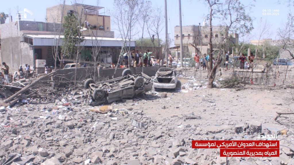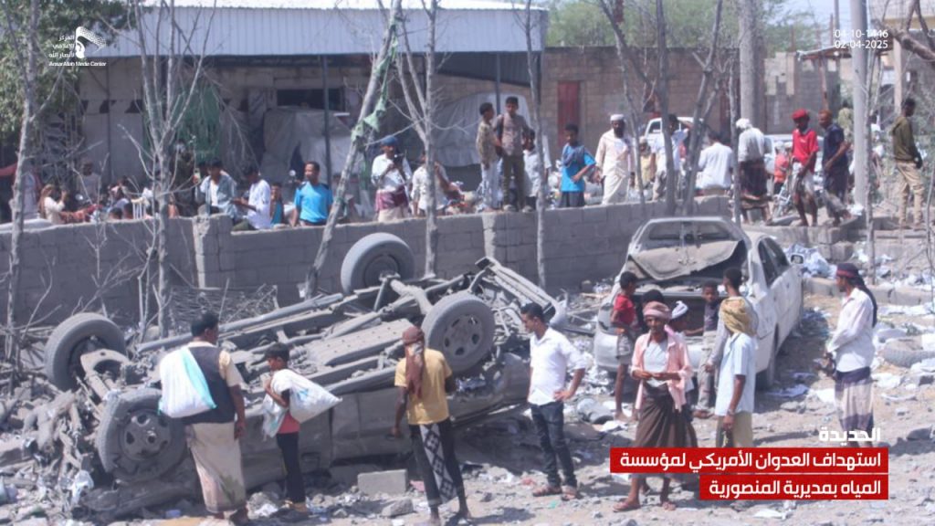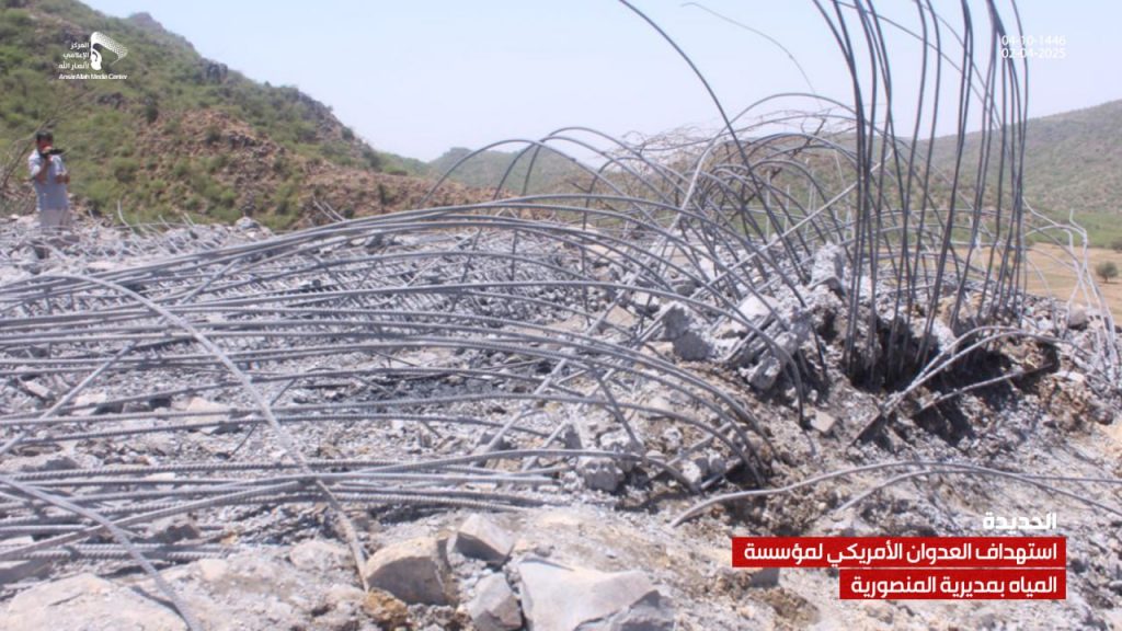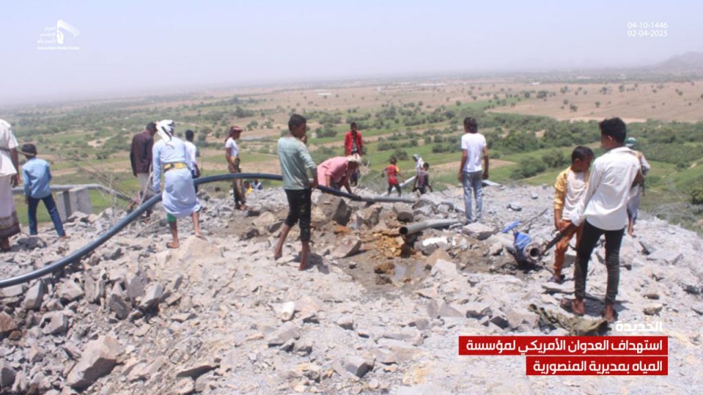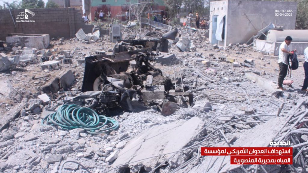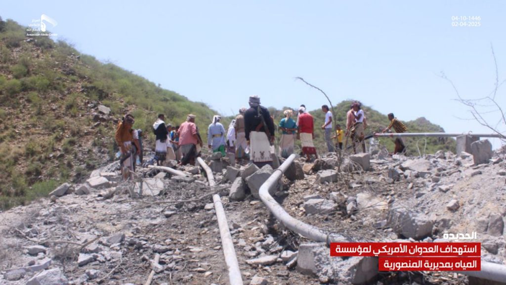 صور| جانب من الدمار الذي لحق بمشروع ومبنى مؤسسة المياه في مديرية المنصورية جراء العدوان الأمريكي On أبريل 2, 2025 Share يمني برس/ صور صور| جانب من الدمار الذي لحق بمشروع ومبنى مؤسسة المياه في مديرية المنصورية جراء العدوان الأمريكي – الحديدة 04-10-1446هـ | 02-04-2025م Share