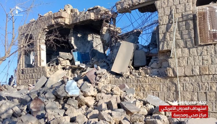 وكان طيران العدوان الأمريكي قد استهدف في وقت سابق مركزاً صحياَ ومدرسة في مديرية وشحة بمحافظة حجة ما أدى إلى تدميرهما بشكل كامل..