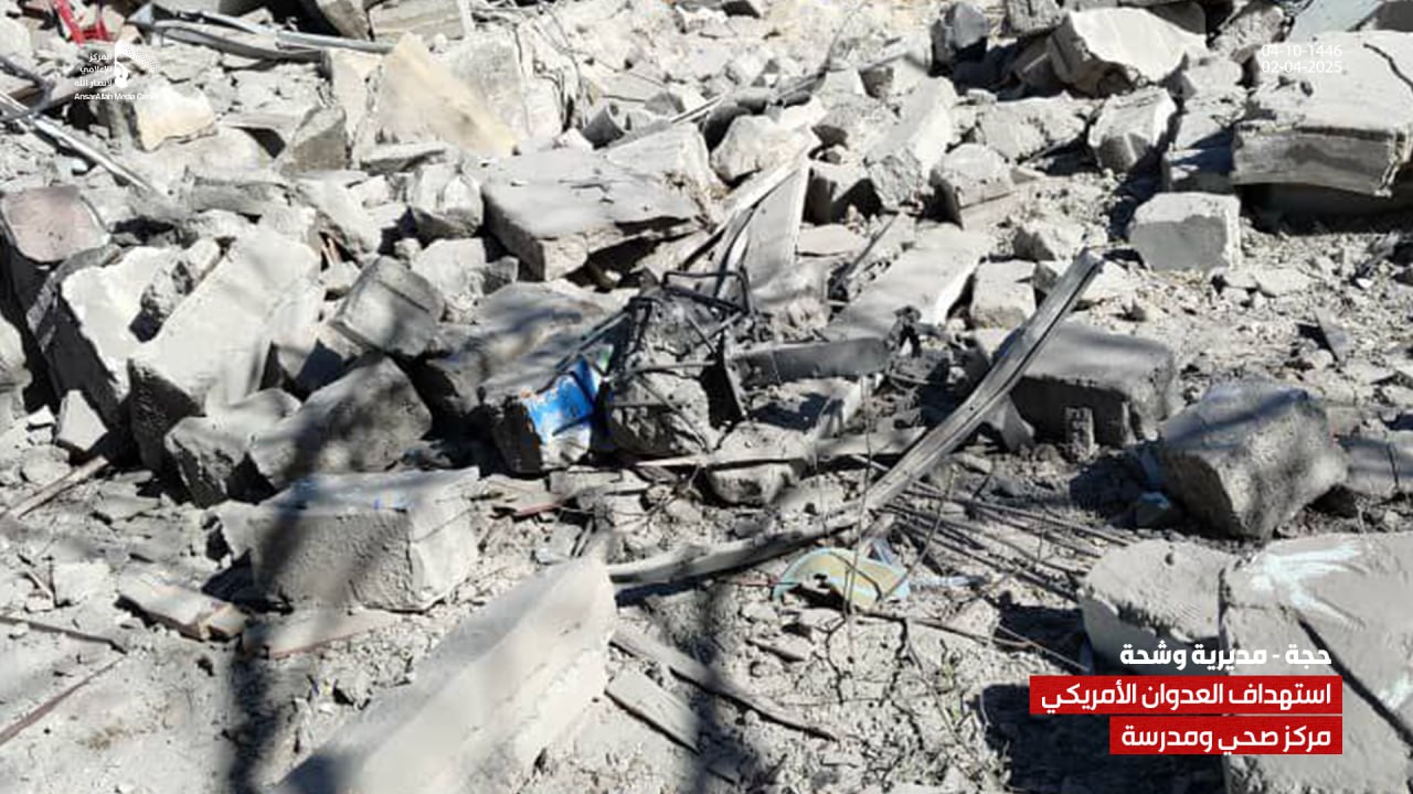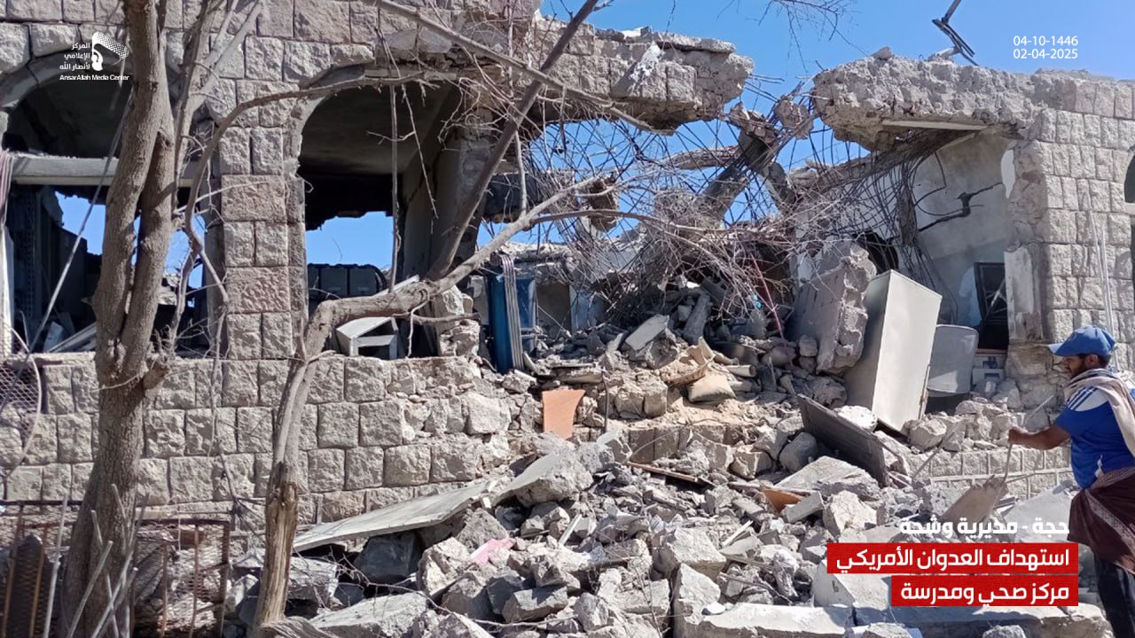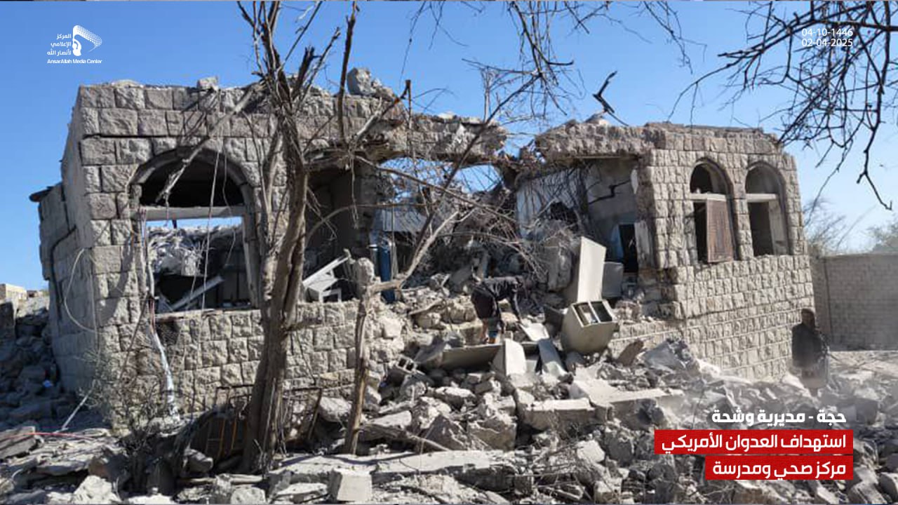 رصدنا لكم بالصور جانباً من الدمار في مركز الصحي ومدرسة بمديرية وشحة بحجة جراء العدوان الأمريكي الغاشم والذي استهدفهما بغارات إجرامية عدة في وقت سابق من يوم امس الأربعاء 4 شوال 1446هـ .