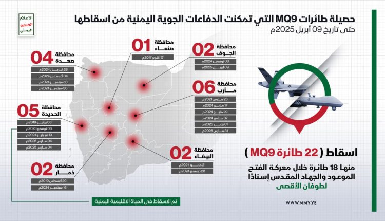 انفو جرافيك – حصيلة طائرات MQ9 التي تمكنت الدفاعات الجوية اليمنية من اسقاطها (حتى 09 أبريل 2025م) انفو جرافيك – حصيلة طائرات MQ9 التي تمكنت الدفاعات الجوية اليمنية من اسقاطها (حتى 09 أبريل 2025م) On أبريل 9, 2025 Share Share