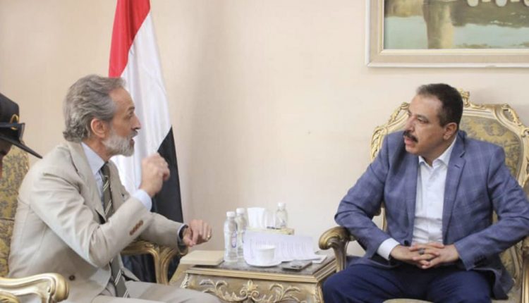 التقى وزير الخارجية والمغتربين جمال عامر، اليوم الأربعاء ، المنسق المقيم للأمم المتحدة – منسق الشؤون الإنسانية بصنعاء جوليان هارنيس.