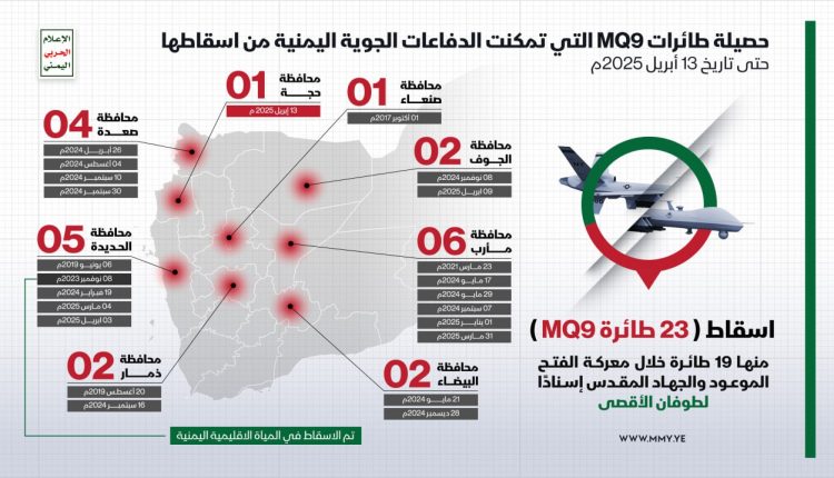 حصيلة طائرات MQ9 التي تمكنت الدفاعات الجوية اليمنية من اسقاطها (حتى 13 أبريل 2025م انفو… – حصيلة طائرات MQ9 التي تمكنت الدفاعات اليمنية من إسقاطها (حتى13 أبريل 25م) انفو… – حصيلة طائرات MQ9 التي تمكنت الدفاعات اليمنية من إسقاطها (حتى13 أبريل 25م) Last updated أبريل 14, 2025 Share يمني برس- انفوجرافيك حصيلة طائرات MQ9 التي تمكنت الدفاعات الجوية اليمنية من اسقاطها (حتى 13 أبريل 2025م Share