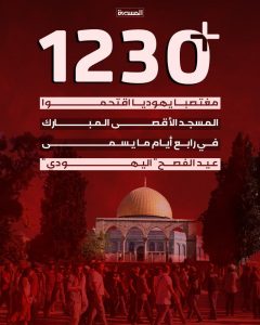 انفوجرافيك ـ أكثر من 1230 مغتصبا يهوديا اقتحموا المسجد الأقصى المبارك في رابع أيام ما يسمى “عيد الفصح” اليهودي بحسب مصادر فلسطينية
