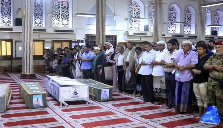 تشييع مهيب في الحديدة لشهداء مجزرة رأس عيسى من عمال شركة الغاز