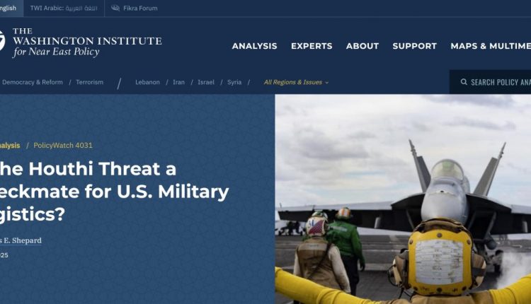 نشر معهد واشنطن للدراسات تقريرا أعده “جيمس إي. شيبارد”، مقدم في القوات الجوية الأمريكية، أوضح فيه أن “تعطيل الحوثيين لحركة الشحن في البحر الأحمر يهدد قدرة الولايات المتحدة على نشر قواتها وتزويدها بالإمدادات بسرعة في الشرق الأوسط وخارجه”