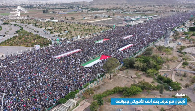 حشود مليونية ومسيرة كبرى بالعاصمة صنعاء تأكيداً على الثبات مع غزة رغم أنف العدو الأمريكي (تفاصيل + صور)