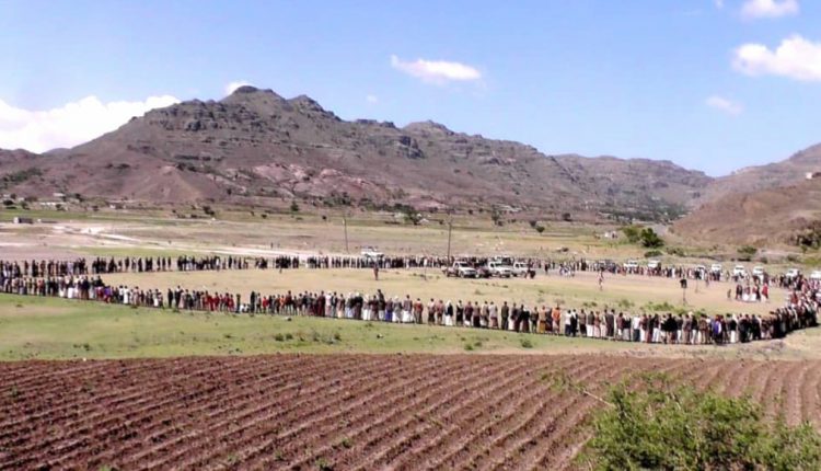 وقفة قبلية مسلحة في مديرية يريم بإب نصرة لغزة وإعلان وثيقة الشرف القبلية