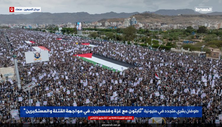 وجددت الحشود المليونية التي رفعت العلمين الفلسطيني واليمني، الموقف الثابت والمبدئي في نصرة ومساندة الشعب الفلسطيني، والتحدي للعدوان الأمريكي البريطاني، ورداً على جرائمه بحق الشعب اليمني ومقدراته.