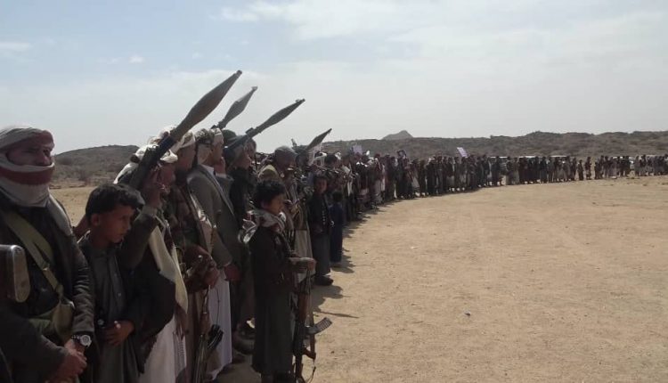 نظم أبناء مديرية الشرية في محافظة البيضاء، اليوم، وقفة مسلحة حاشدة، إسنادا لغزة والاستعداد لمواجهة تصعيد العدوان الأمريكي على اليمن.