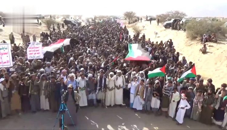 مسيرات حاشدة في مأرب احتفالًا بالنصر على أمريكا ونصرة لغزة