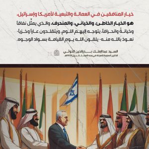 انفوجرافيك ـ خيار المنافقين في العمالة والتبعية لأمريكا وإسرائيل، هو الخيار الخاطئ انفوجرافيك ـ خيار المنافقين في العمالة والتبعية لأمريكا وإسرائيل، هو الخيار الخاطئ On مايو 15, 2025 Share Share