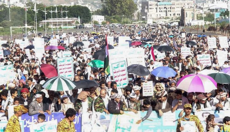 وأكد المشاركون في المسيرات، استمرارهم في التعبئة والوقفات والمسيرات دون كلل أو ملل، منوهًا بما حققته القوات المسلحة اليمنية، في معركة إسناد غزة، وإجبار الأمريكي على إيقاف عدوانه على بلادنا.