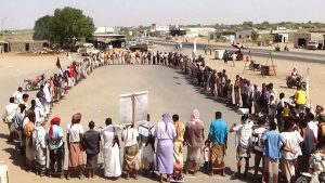 الى ذلك نظمت قبائل مديرية القبيطة بمحافظة لحج ، وقفة قبلية حاشدة، لنصرة الشعب الفلسطيني في غزة، وإشهاراً لوثيقة الشرف القبلية للبراءة من المرتزقة والعملاء .