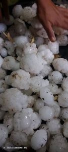 شهدت مديرية العشة شمال محافظة عمران، الأربعاء، ظاهرة جوية غير مسبوقة تمثلت في هطول أمطار رعدية غزيرة مصحوبة بحبات برد ضخمة، وصفها المواطنون بأنها بحجم راحة اليد، ما تسبب في أضرار بالغة طالت الممتلكات والمحاصيل الزراعية.