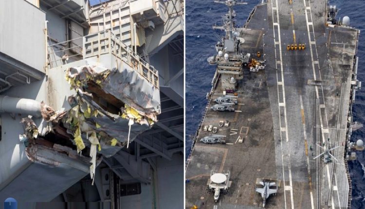 واعترف أنه وعلى الجانب الأيمن من جناح حاملة الطائرات “ترومان” برزت شقوق كبيرة وهذا دليل على ما مرت به ترومان وطاقمها.