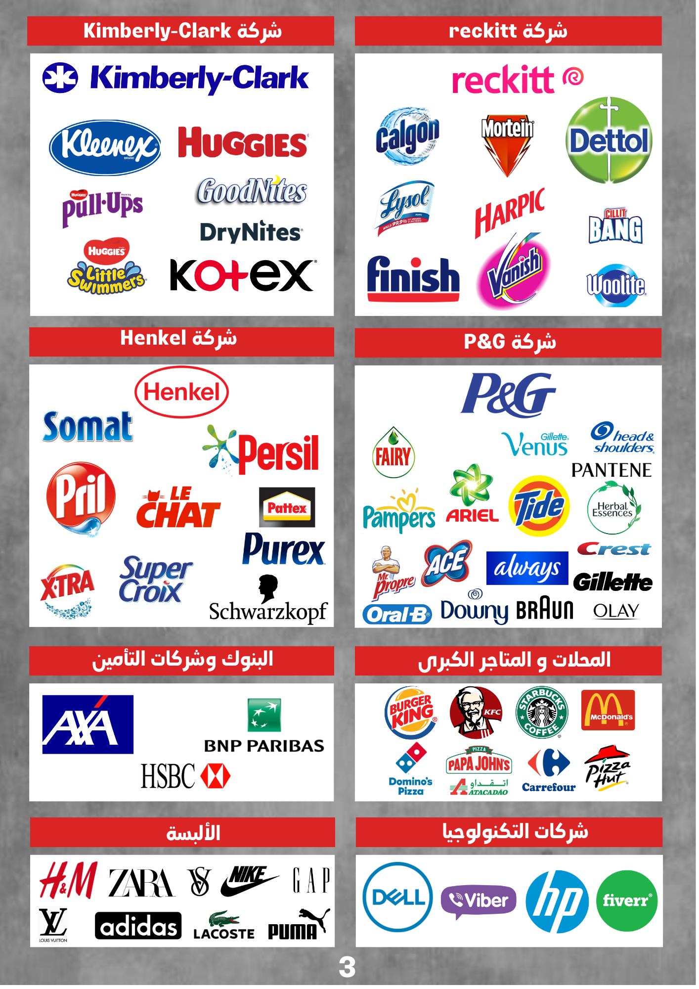 “صورة لبعض الشركات الدعمة لإسرائيل “