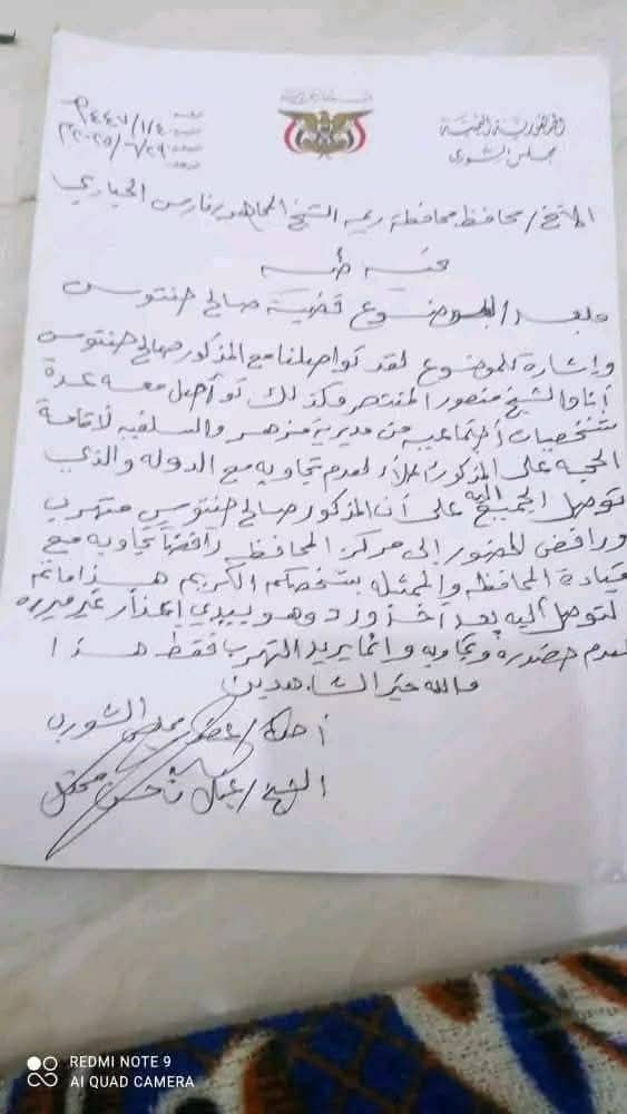 وحسب المصادر من أهالي منطقة السلفية بأنه رغم المساعي الرسمية والاجتماعية لحل القضية سلمياً، ومنها تدخل وكيل المحافظة الشيخ محمد عبده مراد، وقيادات اجتماعية كعضو مجلس الشورى الشيخ غيلان حسن والشيخ منصور المنتصر، إلا أن المدعو حنتوس أصرّ على الرفض ورفض الاعتراف بالدولة وأجهزتها الأمنية.