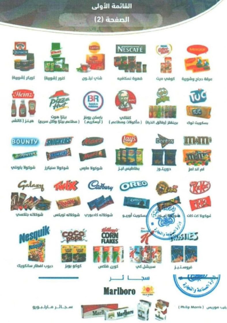 الجمارك تدعو لمقاطعة البضائع الأمريكية والإسرائيلية وتتوعد بالمصادرة