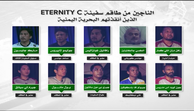 شاهد القوات المسلحة اليمنية تكشف مصير طاقم السفينة “إترنيتي سي” بعد استهدافها في البحر الأحمر