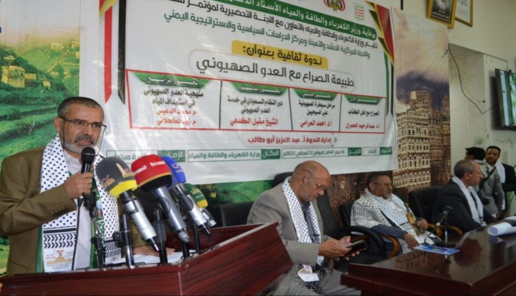 يمني برس | عقدت اليوم في صنعاء ندوة ثقافية بعنوان “طبيعة الصراع مع العدو الصهيوني”، نظمتها وزارة الكهرباء والطاقة والمياه بالتعاون مع اللجنة التحضيرية لمؤتمر فلسطين.