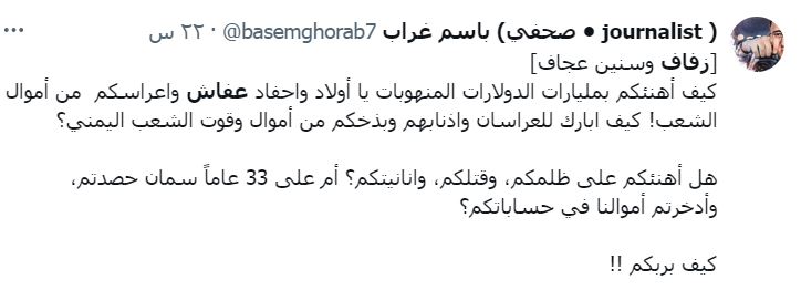 وتساءل المعلقون: لماذا لا يُحاكم من كانوا مسؤولين عن سرقة ونهب خيرات اليمن، من بينهم هذه الاسرة الذي نهبت المال العام واستثمرته لمشاريعها الخاصة .