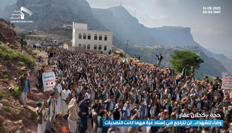 شهدت محافظة حجة اليوم، 311 مسيرة تضامناً مع الشعب الفلسطيني وإسنادًا لغزة تحت شعار “وفاءً للشهداء .. لن نتراجع في إسناد غزة مهما كانت التضحيات”.