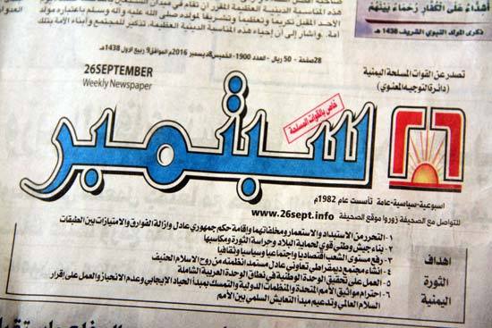 يمني برس | نعت صحيفة 26 سبتمبر اليوم 31 من الصحفيين والإعلاميين الذين استشهدوا جراء العدوان الإسرائيلي الذي استهدف مقر الصحيفة بالعاصمة صنعاء، ما أدى إلى تدميره بالكامل وإصابة 22 صحفياً إلى جانب استشهاد وجرح العشرات من المدنيين.