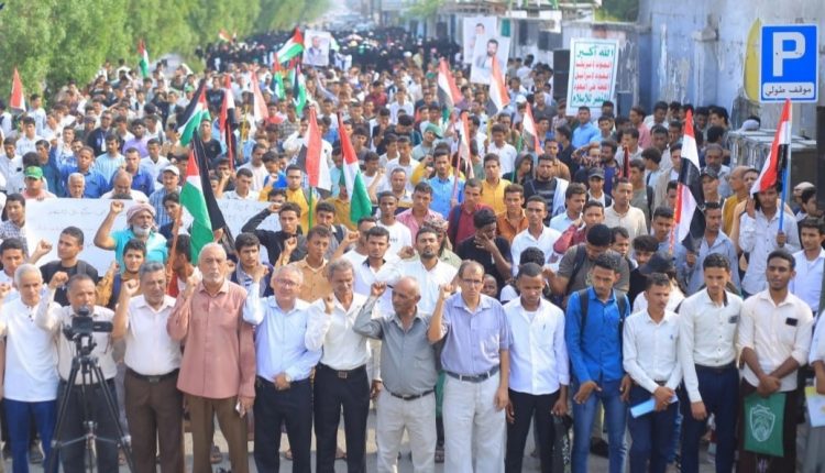 مسيرة للجامعات والمعاهد بالحديدة دعمًا لغزة