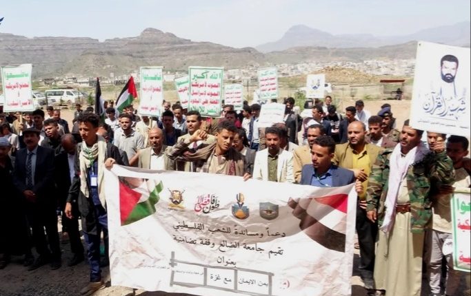 جامعة الضالع تنظم مسيرة طلابية حاشدة تضامناً مع غزة