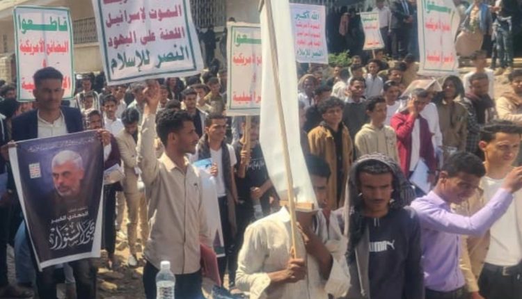 طلاب تعز يرفعون شعارات البراءة من الصهاينة وأعوانهم