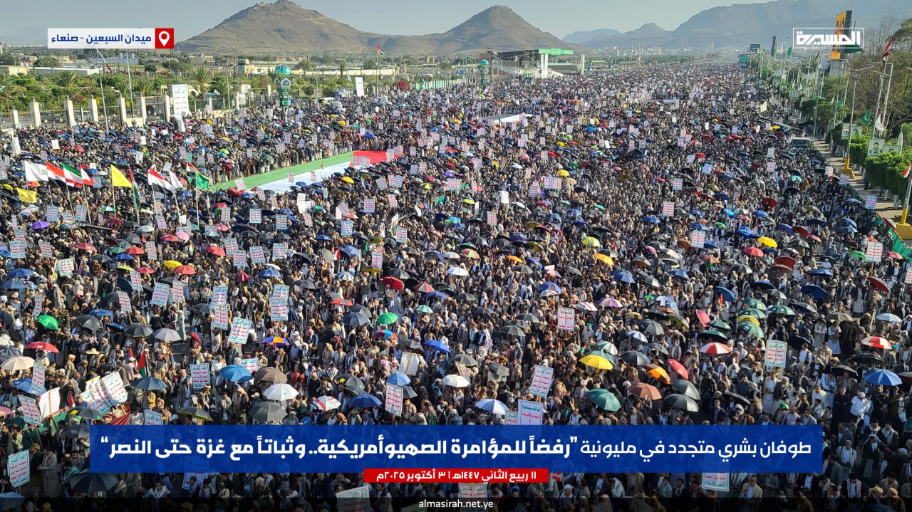 شاهد تفاصيل بيان المسيرات اليمانية المليونية الكبرى” رفضا للمؤامرة الصهيوأمريكية.. وثباتا مع غزة حتى النصر ”