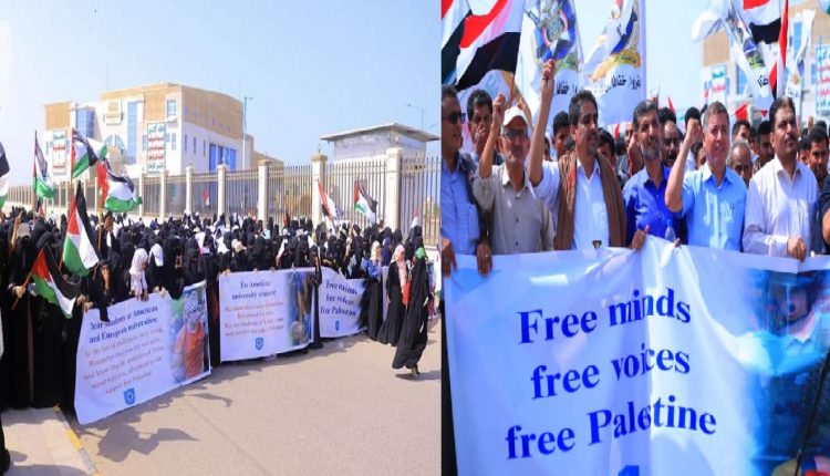 مسيرة حاشدة في جامعة الحديدة رفضاً لمؤامرات العدو ودعماً لغزة