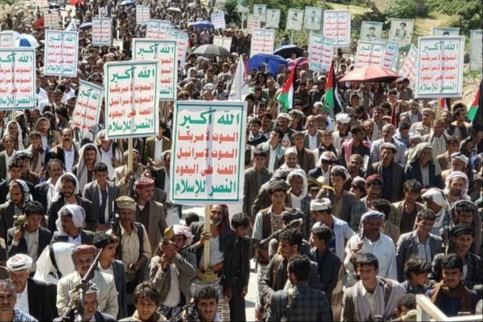 يمني برس | نظمت قوات التعبئة العامة في مديريتَي رازح وباقم بمحافظة صعدة اليوم عرضًا شعبيًا ومسيرًا وتطبيقًا قتاليًا لخريجي دورات “طوفان الأقصى” بمناسبة الذكرى الثانية للعملية.