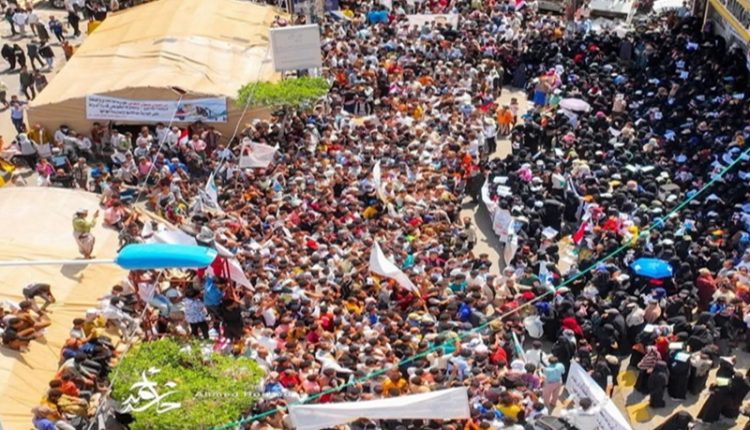 وفي ساحات الاعتصام، شارك عشرات الآلاف من أبناء المناطق الواقعة تحت سيطرة ميليشيا حزب الإصلاح الموالية لتحالف العدوان السعودي الإماراتي، رافعين شعارات تطالب بالتحرك الفوري لضبط المطلوبين أمنياً وتفعيل القصاص وإنصاف أسر الضحايا.