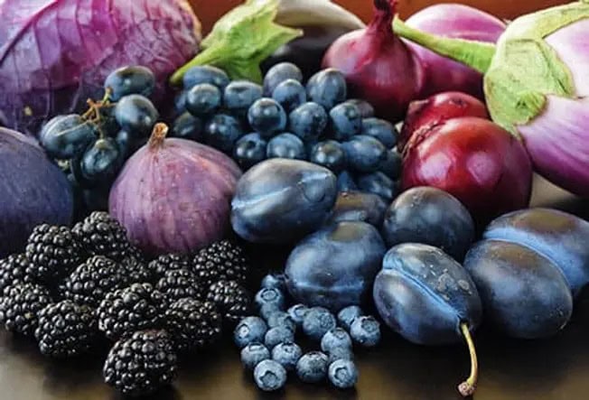 وبينت نتائج الدراسة: أن الفواكه والخضروات البنفسجية مثل التوت البنفسجي، والكشمش الأسود، والبطاطس الحلوة الأرجوانية، والكرنب الأرجواني يمكن أن تعزز تعافي الجسم بعد النشاط البدني وتحمي الخلايا من الشيخوخة.