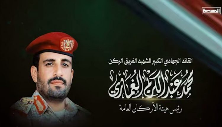 نتقدم بأحر التعازي والمواساة لقائد الثورة قائد المسيرة القرآنية السيد القائد عبد الملك بدر الدين الحوثي يحفظه الله ولرئيس المجلس السياسي الأعلى المشير الركن مهدي محمد المشاط، والقائم بأعمال رئيس حكومة التغيير والبناء الأستاذ العلامة محمد مفتاح، ولحكومة التغيير والبناء ولوزير الدفاع اللواء الركن محمد ناصر العاطفي، ولأسرة الشهيد وأقاربه وذويه، وللشعب اليمني العظيم جميعاً في استشهاد القائد الجهادي الكبير الشهيد الفريق الركن محمد عبد الكريم الغماري رئيس هيئة الأركان العامة “رضوان الله عليه”.