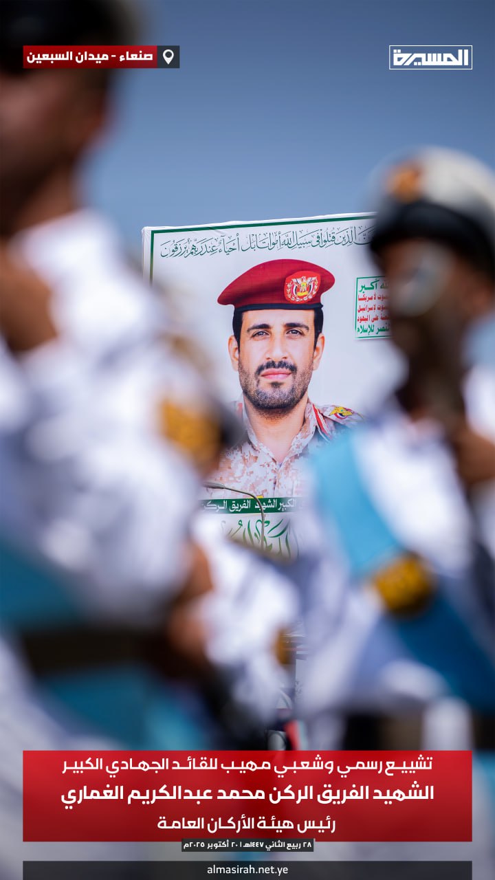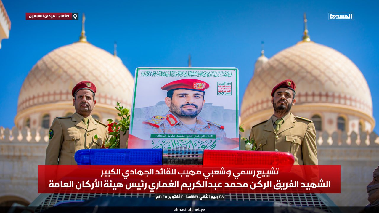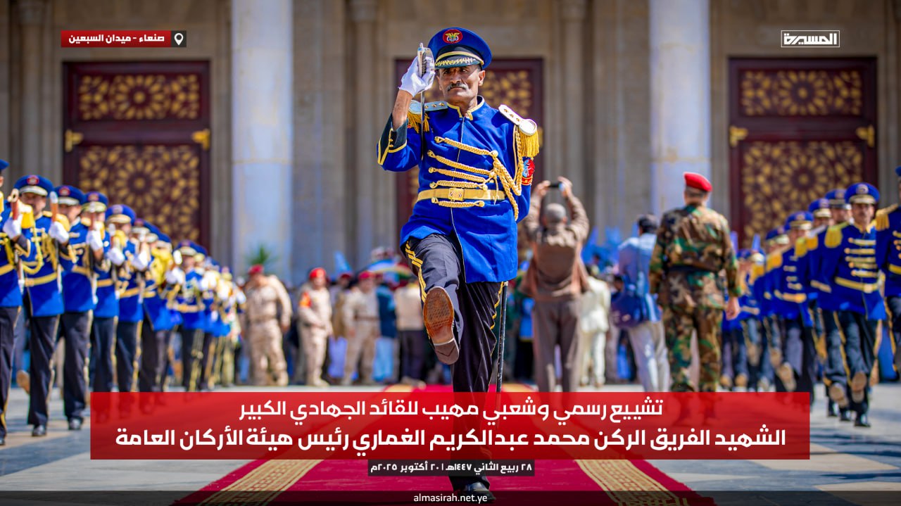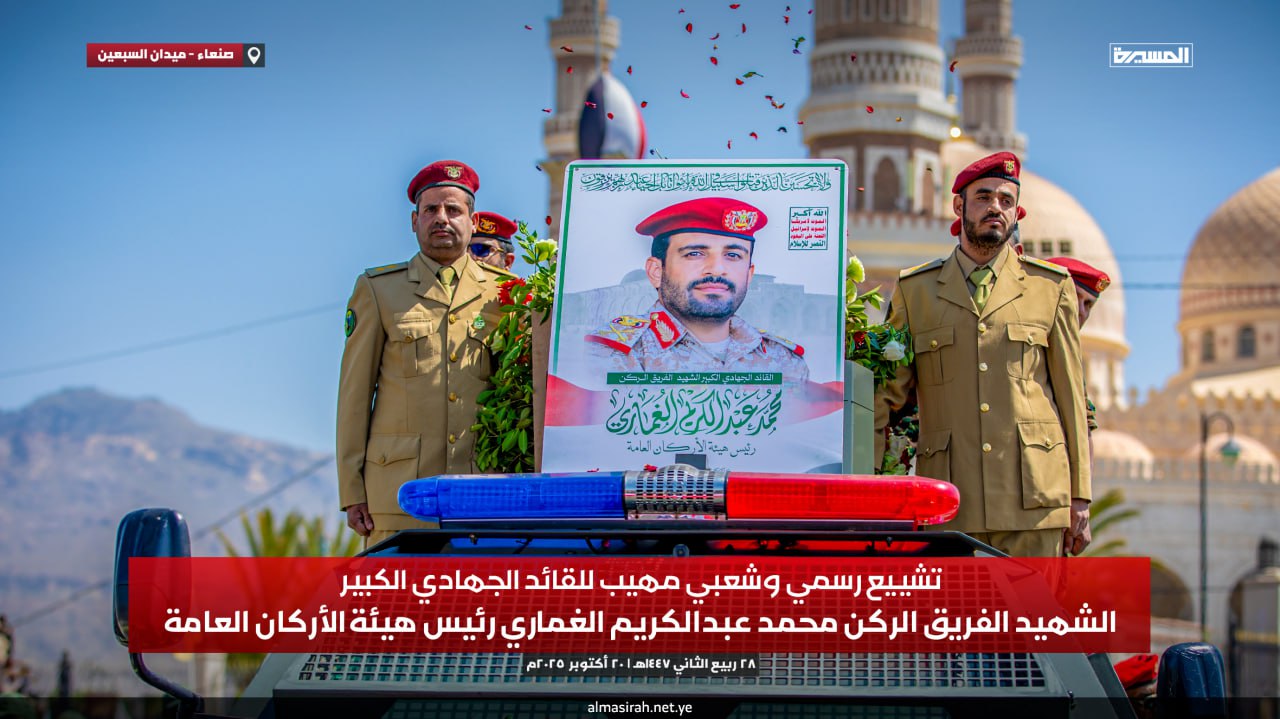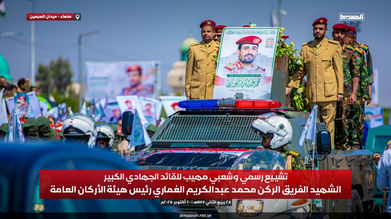 شهدت العاصمة صنعاء موكب جنائزياً كبيراً لجثمان شهيد الوطن الكبير الفريق الركن محمد الغماري بمشاركة واسعة من كافة أبناء اليمن يتقدمهم ثلة كبيرة من قيادة الدولة عسكريين ومدنيين..