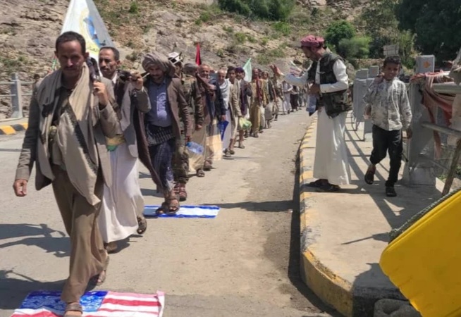 مسيرة ومناورة ميدانية لخريجي دورات “طوفان الأقصى” في جبل المحويت