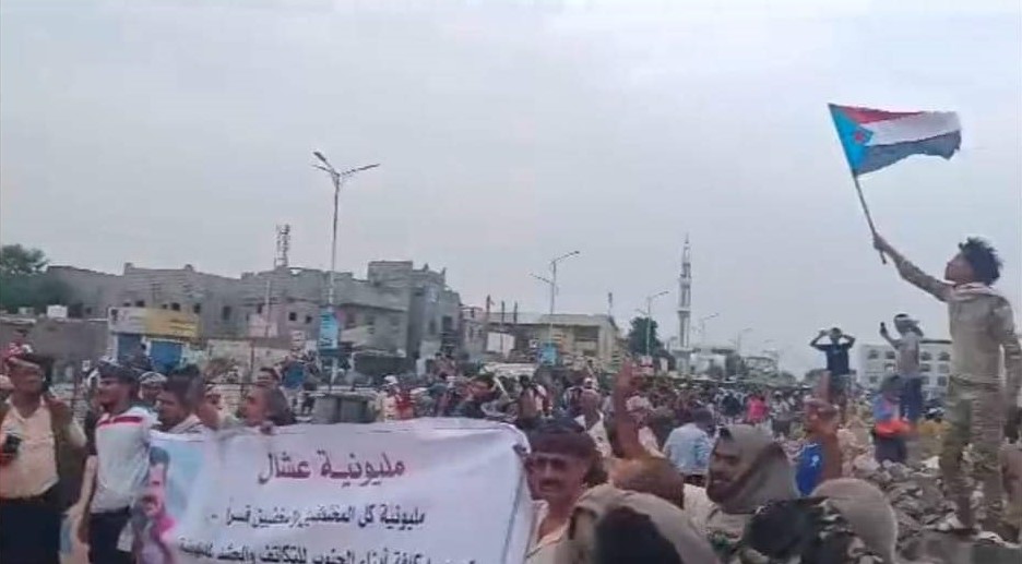 وأوضح الشيخ علي صالح مسعود عشال، عمّ المختطف، في مقطع مصوّر، أن التظاهرة تأتي نصرةً لكل المختطفين والمخفيين قسراً في سجون المجلس الانتقالي، مؤكداً أن القضية لم تعد تخص أسرة عشال وحدها، بل تمسّ كرامة جميع أبناء أبين والجنوب.