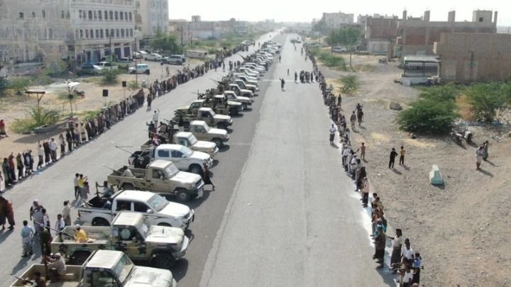 شهدت مديرية الجراحي في محافظة الحديدة اليوم وقفة مسلحة شارك فيها ابناء مديريتي حيس والخوخة، للتأكيد على استمرار التعبئة والنفير في مواجهة ما يصفونه بالعدوان، تحت شعار “وفاء لدماء الشهداء.. التعبئة مستمرة”.