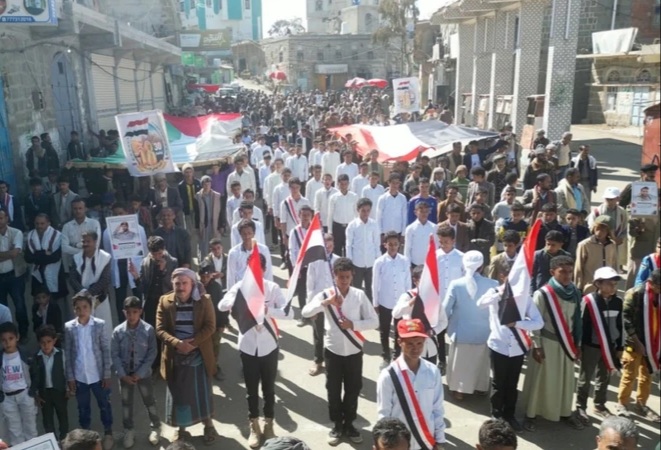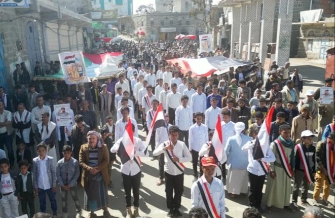 يمني برس | شهدت محافظة ريمة، اليوم، مسيرات جماهيرية حاشدة بمناسبة العيد الـ58 للاستقلال الـ30 من نوفمبر، تحت شعار “التحرير خيارنا.. والمحتل إلى زوال”، بمشاركة واسعة من أبناء المحافظة ومديرياتها.