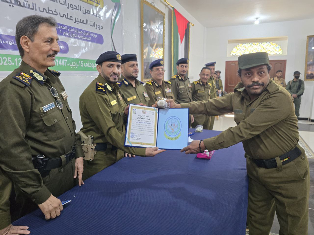 احتفت كلية التدريب بأكاديمية الشرطة، بتخريج دورات تخصصية ضمن دفعة “السير على خطى الشهيد القائد”، بحضور نائب وزير الداخلية اللواء عبد المجيد المرتضى وقيادات أمنية رفيعة.