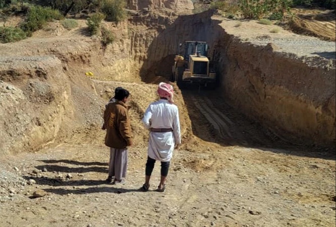 يمني برس | دشن في منطقة السحيحة بمديرية المطمة بمحافظة الجوف العمل في مبادرة مجتمعية لإنشاء حاجز مائي تحت سطحي، تنفذها الوحدة الحقلية بالتعاون مع الأهالي ووحدة التدخلات المركزية التنموية الطارئة ووحدة تمويل المشاريع والمبادرات الزراعية بالمحافظة.