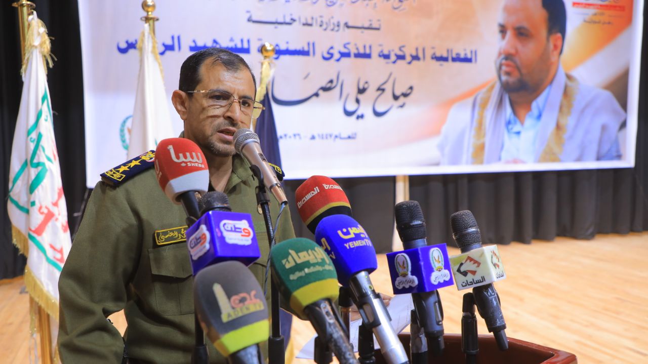 وفي الفعالية التي حضرها مستشارو وزير الداخلية ورؤساء المصالح وقيادات ومديرو عموم الوزارة، ألقى مدير عام التوجيه المعنوي والعلاقات العامة بالوزارة، العميد حسن الهادي، كلمة أكد فيها أهمية إحياء ذكرى الرئيس الشهيد بوصفها إحياءً لشخصية وطنية جسّدت معاني تحمّل المسؤولية وقيادة الوطن والدفاع عن سيادته في مواجهة العدوان.