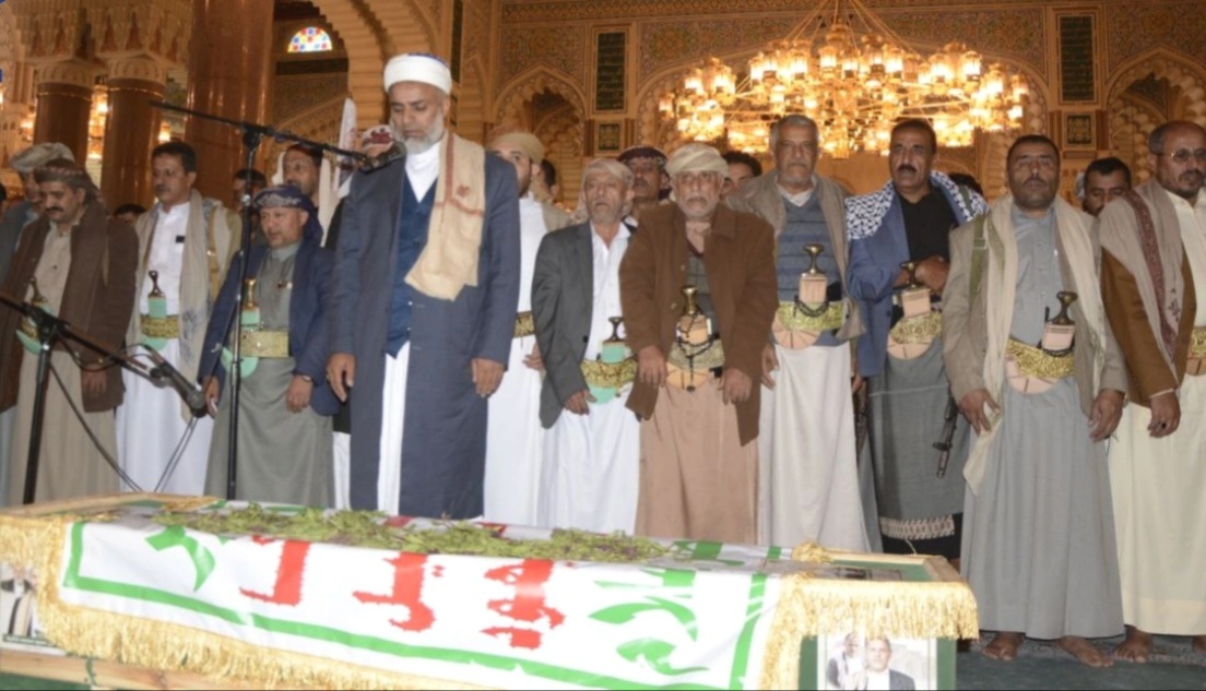 يمني برس | شيع في العاصمة صنعاء اليوم جثمان المجاهد الشيخ حسن حمود غثاية في موكب جنائزي مهيب، تقدمه عدد من القيادات الدينية والرسمية والشخصيات الاجتماعية، عقب صلاة الجنازة التي اقيمت في جامع الشعب.