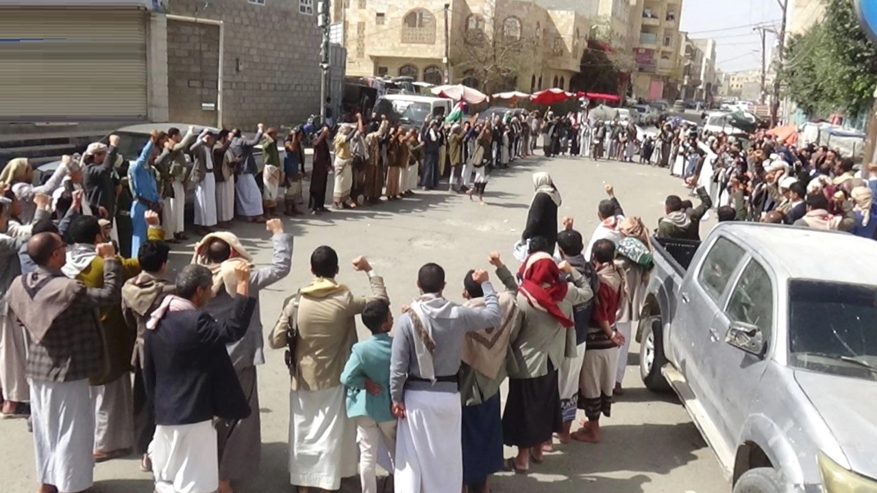ورددّ المشاركون في الوقفات بمختلف قرى وعزل مديريات المحافظة، هتافات التعبئة والجهاد والنصرة للشعب الفلسطيني، وشعارات منددة باستمرار جرائم العدو الصهيوني في غزة والضفة الغربية.