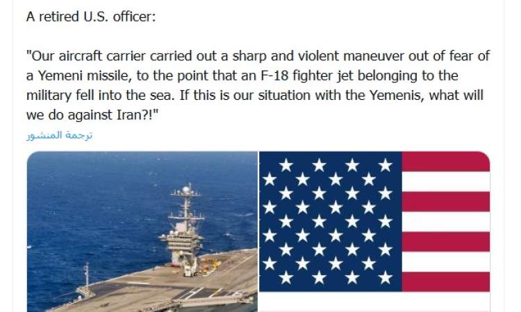 وكانت أقوى قوة بحرية في العالم قد تعرضت لهزات متتالية أثرت على صورتها الدولية، عقب تمكن اليمن من فرض معادلته البحرية في البحر الأحمر والبحر العربي وخليج عدن، وإجبار حاملات الطائرات والبوارج الحربية الامريكية على مغادرة المنطقة، إثر هجمات بالصواريخ البالستية والطائرات المسيرة، وهو ما دفع الرئيس الامريكي دونالد ترامب إلى الاعتراف بقوة الحوثيين وإبرام اتفاق معهم بوساطة عمانية.