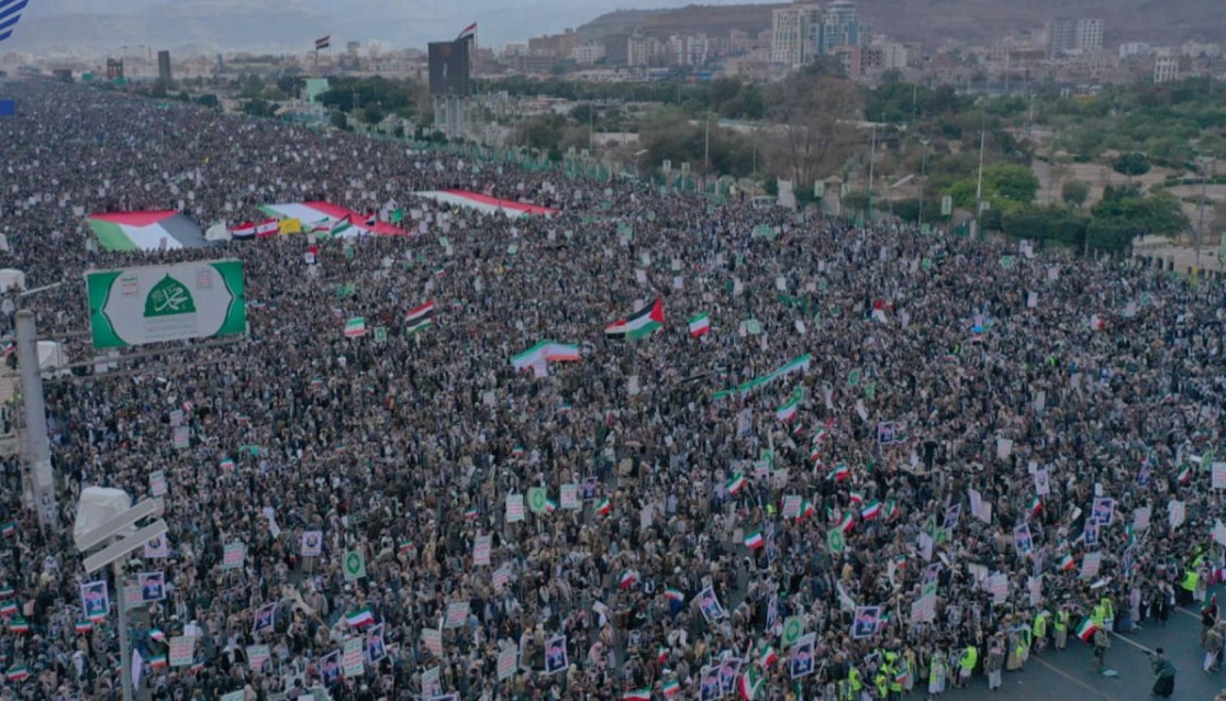 مسيرة كبرى بصنعاء تضامنًا مع إيران وإعلان الجاهزية على كل المستويات لمواجهة التصعيد