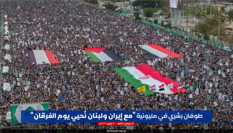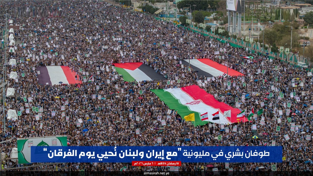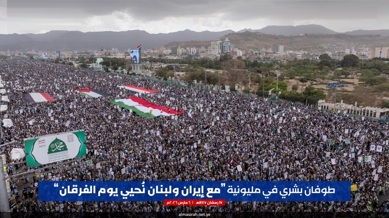 شهد ميدان السبعين في العاصمة صنعاء ونحو 700 ميدان وساحة في مختلف المحافظات اليمنية الحرة عصر اليوم الجمعة 17 رمضان خروج مسيرات تضامنية حاشدة تحت شعر (مع إيران ولبنان نحيي يوم الفرقان) ..