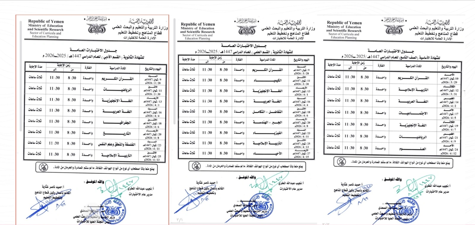 Return to "مهم.. التربية تُحدد موعد اختبارات الشهادة العامة والأساسية.. ويمني برس ينشر جداول الاختبارات" جداول الاختبارات Next